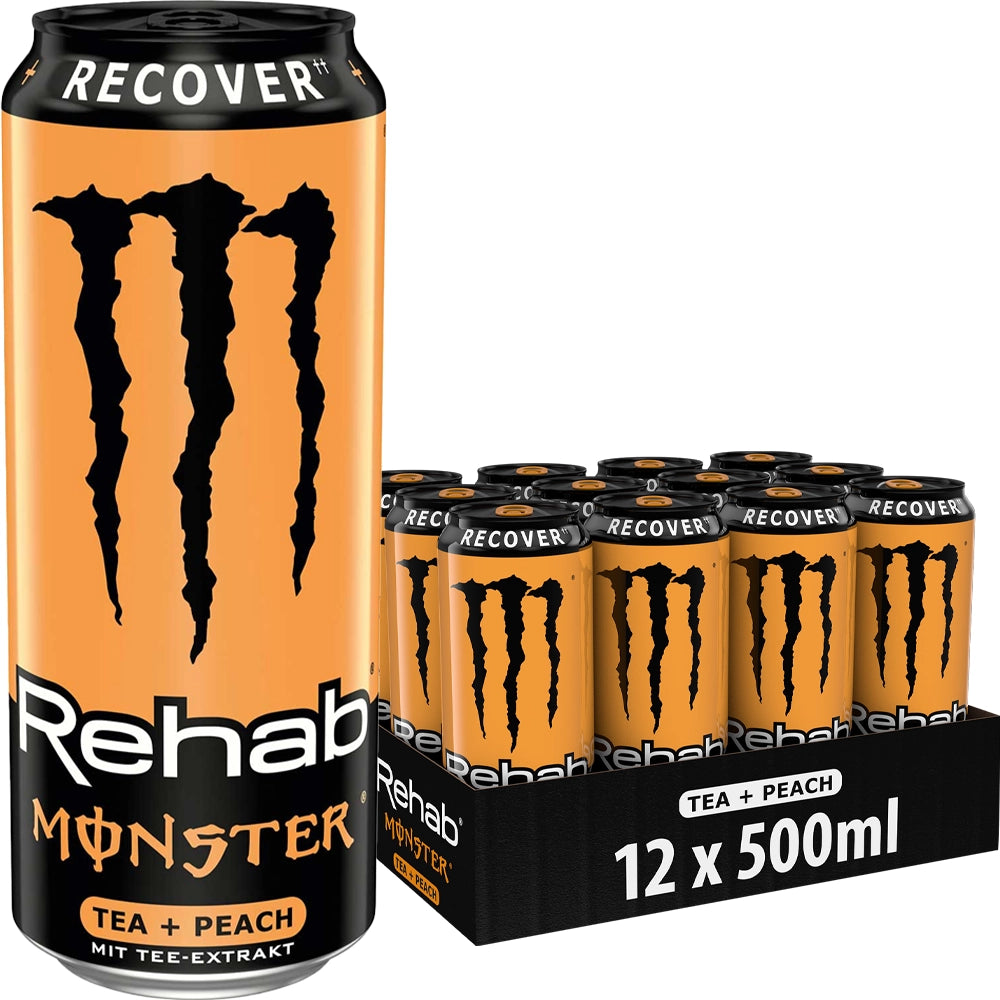 Monster Energy Rehab Tea + Peach combineert de verfrissende smaak van ijsthee met sappige perziksmaak en een energieboost. Deze energieke drank, boordevol elektrolyten en vitamines, helpt je op te laden en gehydrateerd te blijven. Met slechts 25 calorieën per blikje is het een manier om je dag zonder schuldgevoel van energie te voorzien. Geniet van de zachte en fruitige smaak van Monster Rehab Tea + Peach voor een verfrissende en revitaliserende energieboost.
